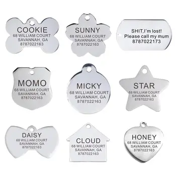 Personalized Pet ID Tag Engraved Stainless Steel Name Tags Collar Accessory Pendant Customized Free Engraving Dog Cat Nameplate
