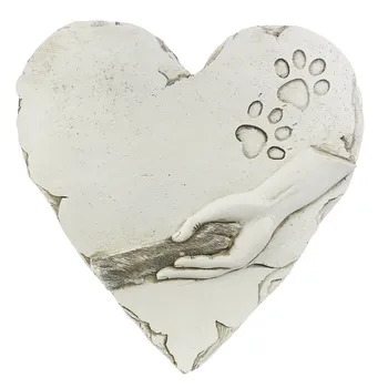 New Cat Dog Heart Shaped Paw Print Remembrance Memorial Stone Grave Marker for Outdoor Tombstone Or Indoor Display Pet Gift.