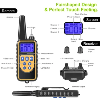 800m Dog Training Collar Dog Training Device IP7 Waterproof Pet Remote Control Rechargeable dog collar for 3 dogs at same time