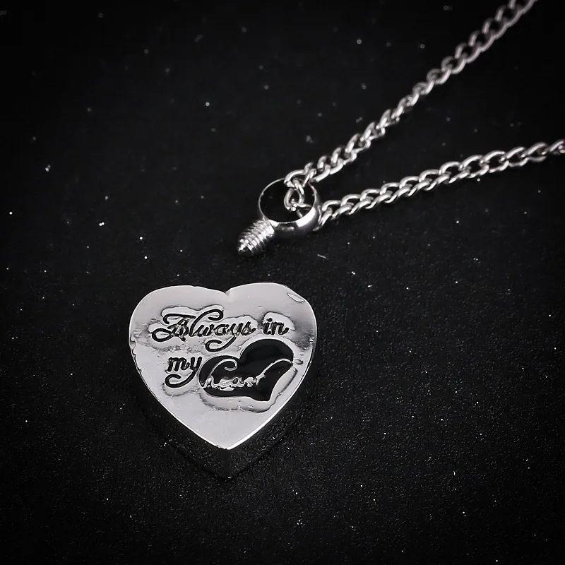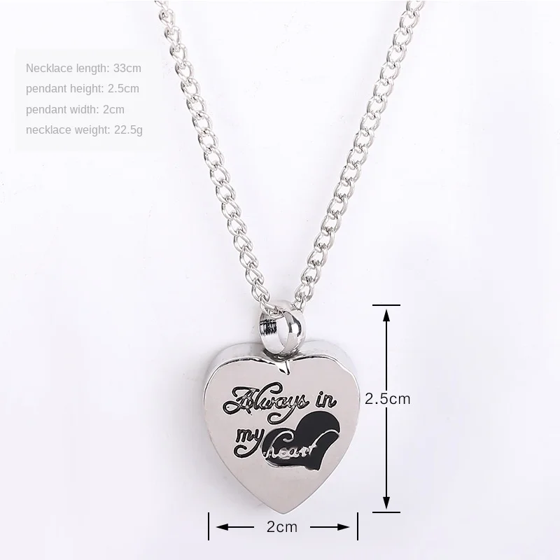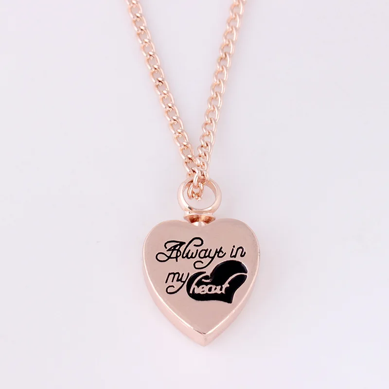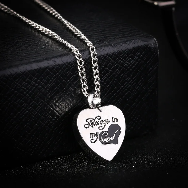 Always In My Heart Two Tone Locket Heart Cremation Memorial Ashes Urn Necklace Jewelry Keepsake Pendant