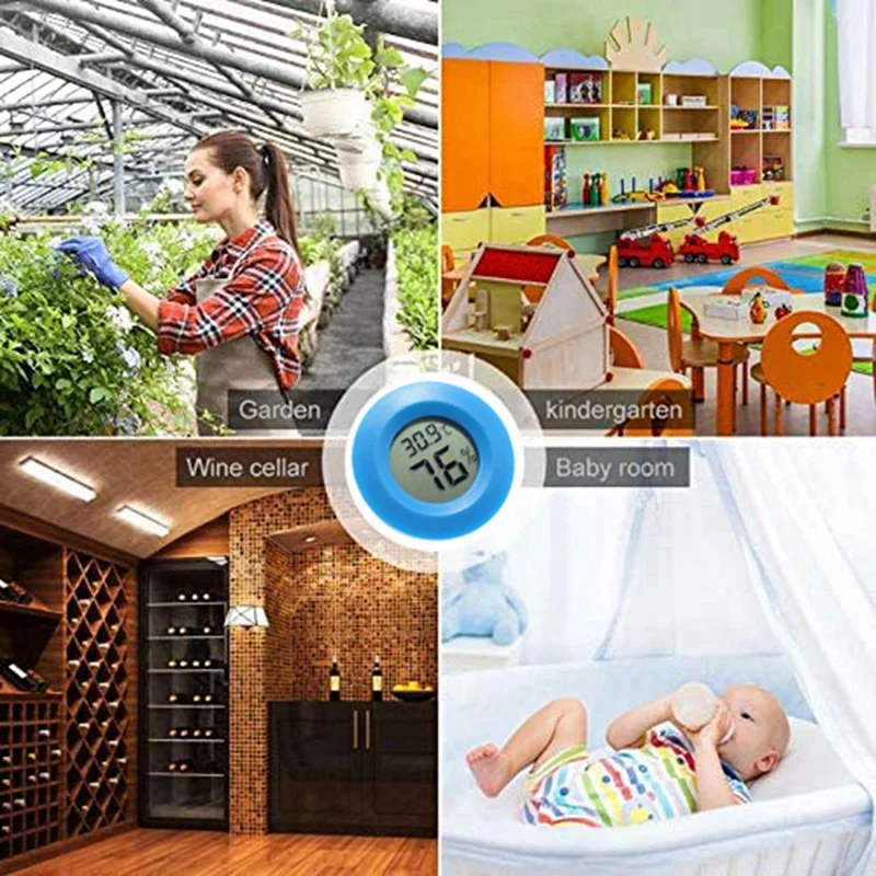Mini round digital humidity thermometer allows you to easily know the environment temperature and humidity. Small, Durable and Portable enough for saving space and carrying around