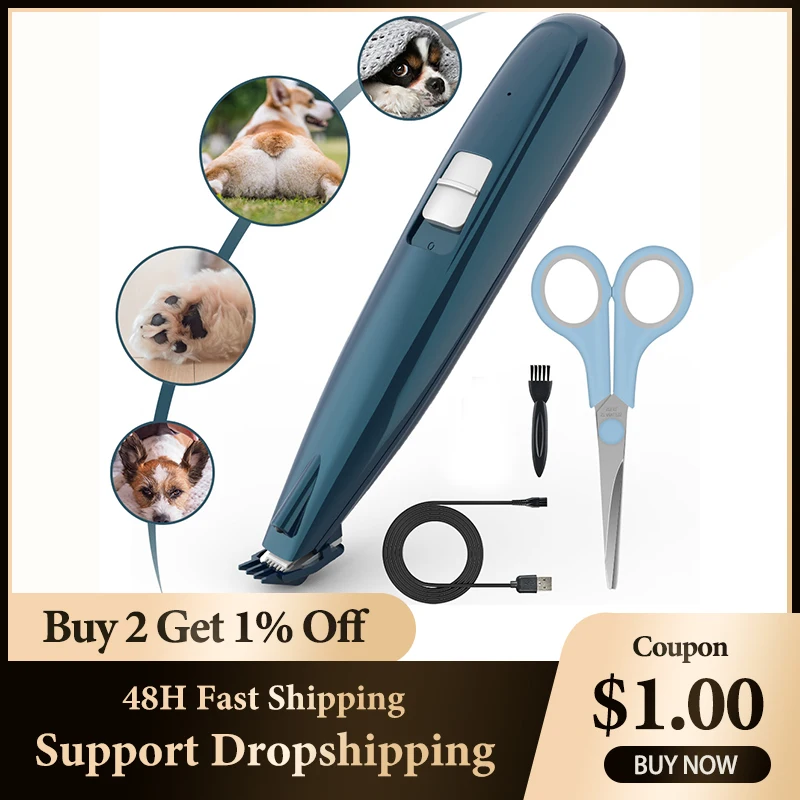 Dog Grooming Clippers Cordless Cat and Small Dogs Clipper Low Noise Electric Pet Trimmer for Trimming The Hair Around Paws