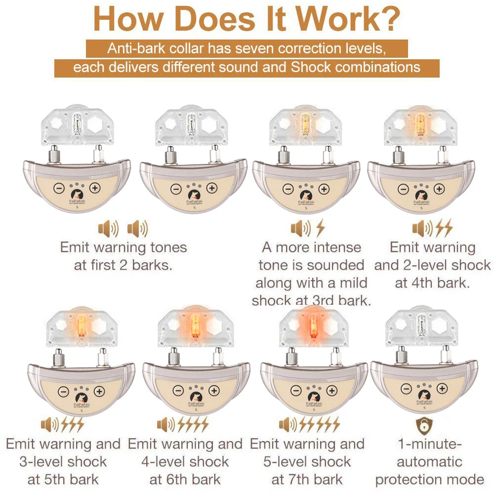 Dog stop barking Electric shock collar Gold bark collar Rechargeable 7 levels Adjustable sensitivity Automatic Anti bark collar