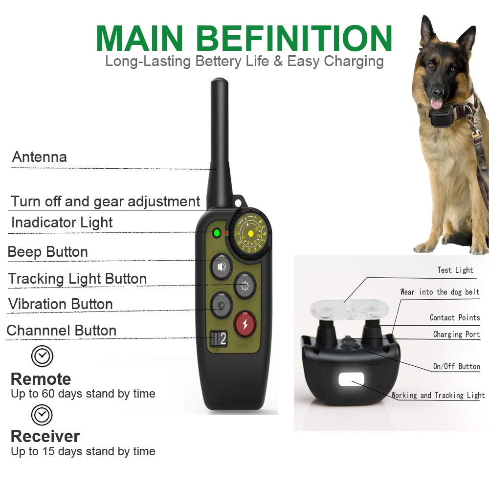 Dog Training Collar for 2 dogs Rechargeable 3 Training Modes Beep Vibration Shock Outdoor Remote Waterproof Electronic Collar