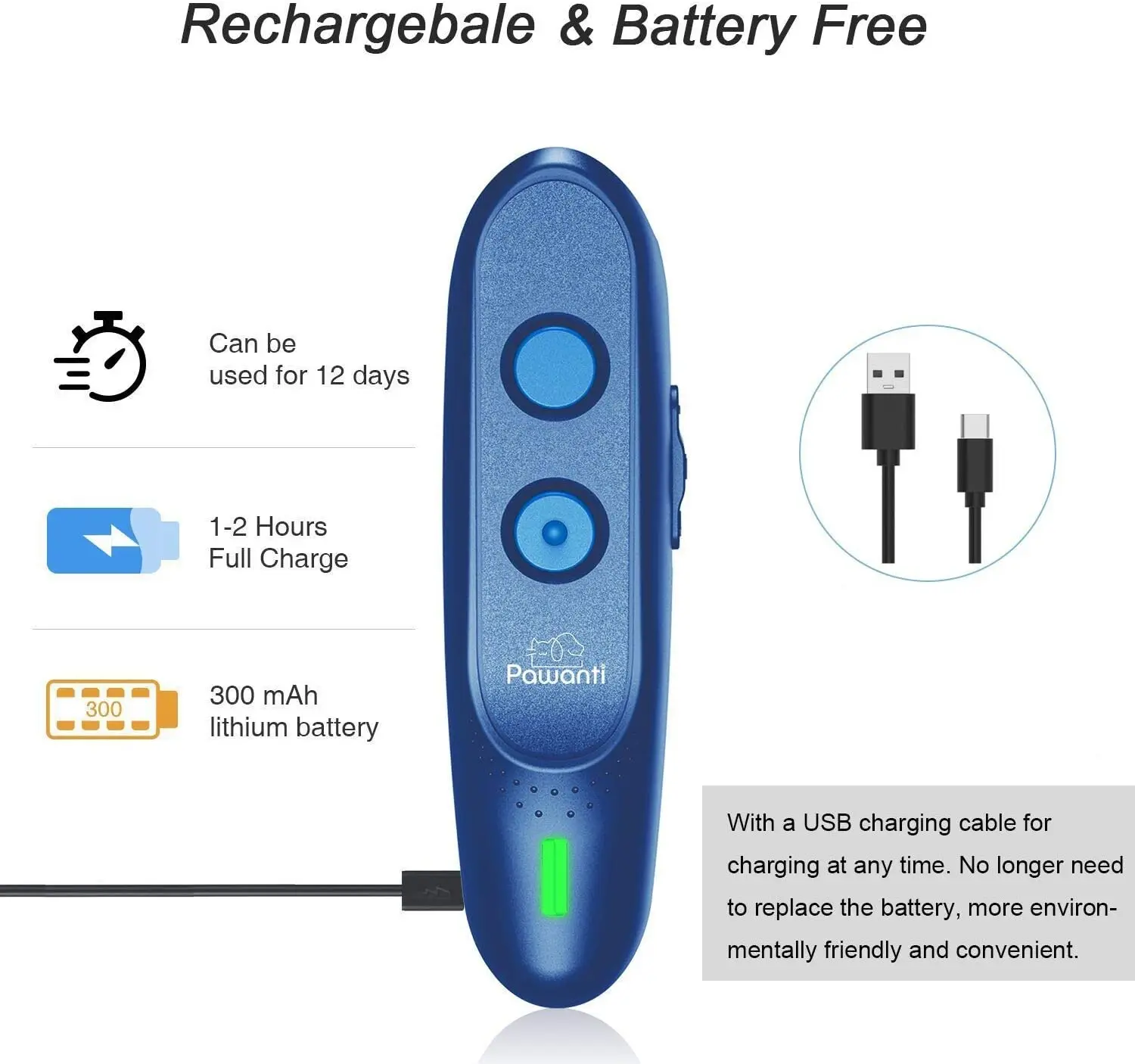 Handheld and mini size, easy to carry and use, the anti-bark control device fits perfectly in your hand. USB rechargeable and no battery design without worrying about no power, built-in 300mAh battery which can last up to 20 days.