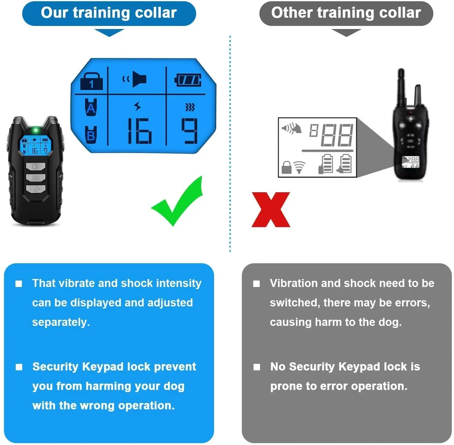 –Safety keyboard lock and certification: The safety keyboard lock is a feature of the dog shockproof collar, which can protect your dog from unintentional manipulation
