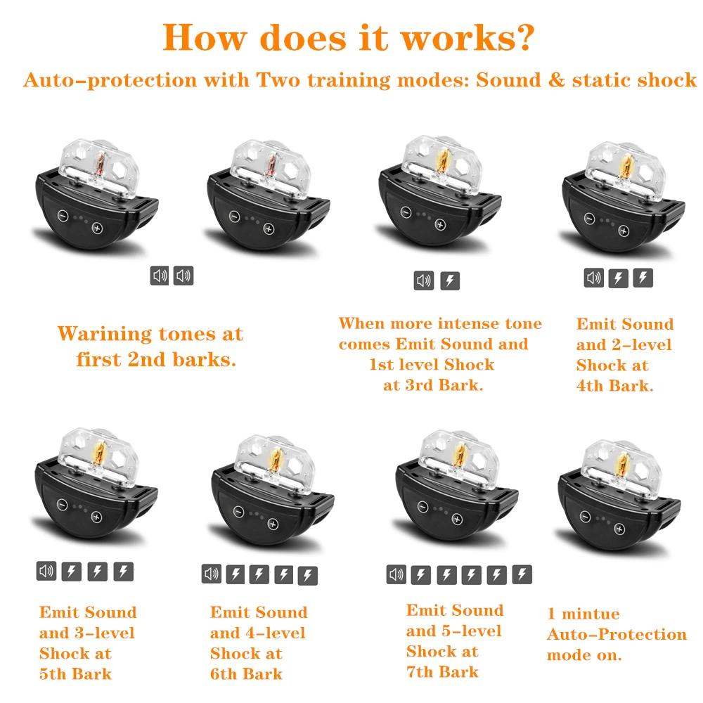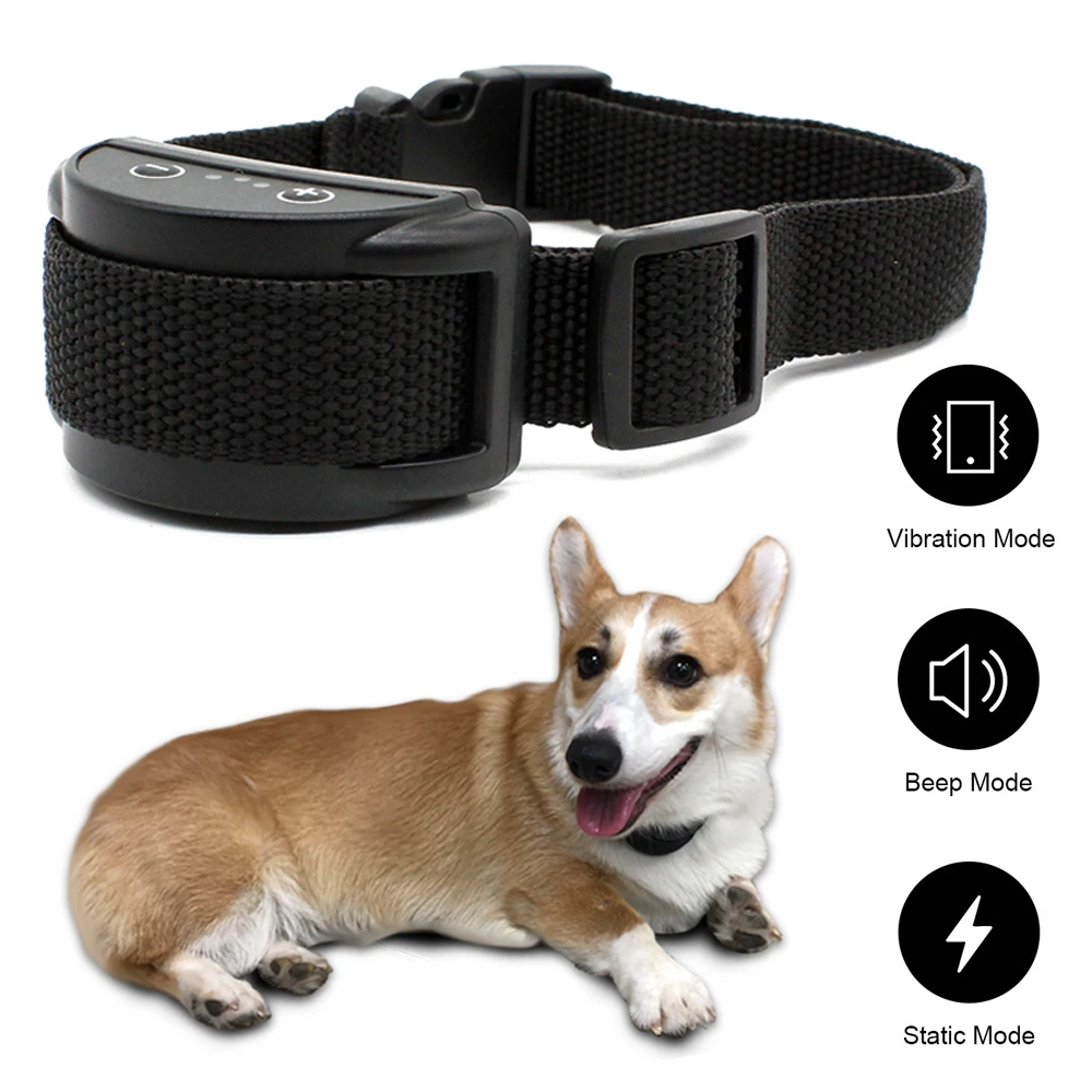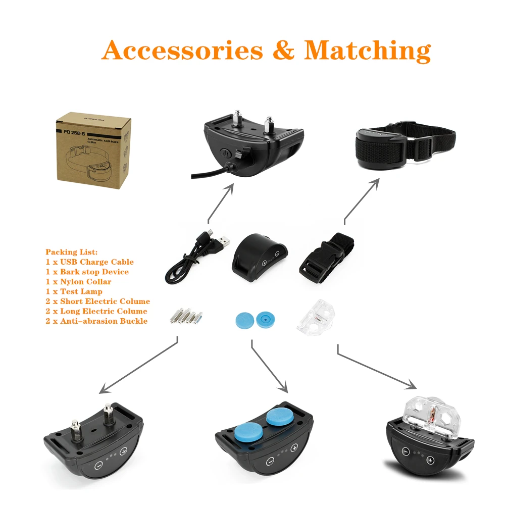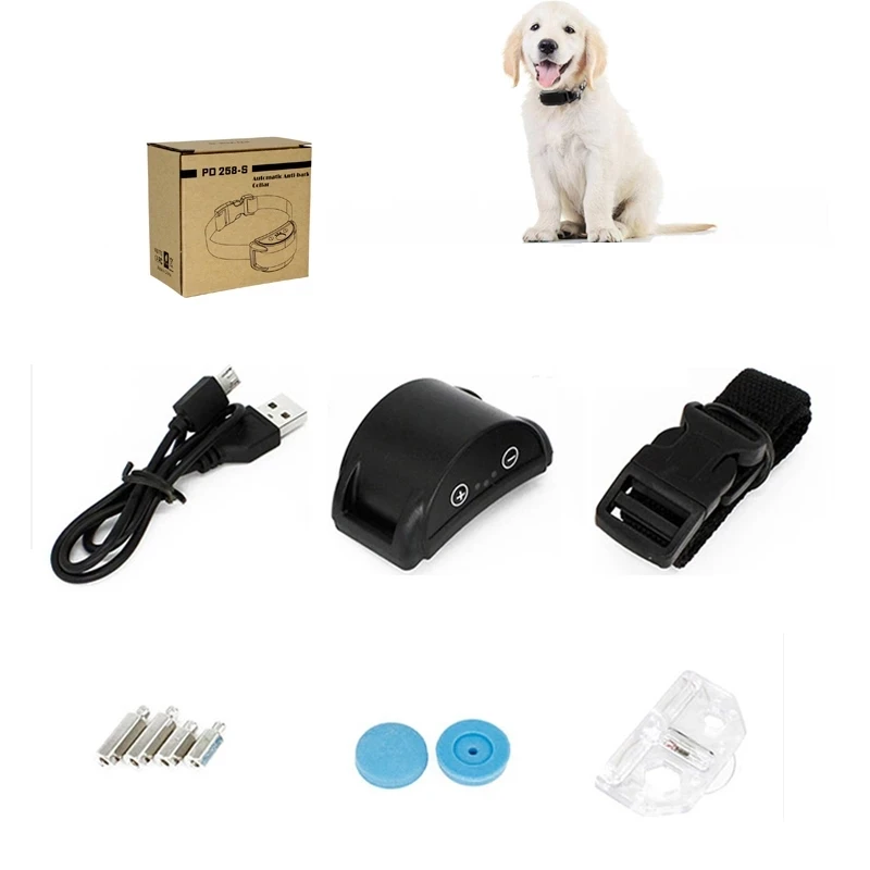 New PD258-S Pet Dog Training Collar Anti-barking Collar Electric Shock Adjustable Nylon Strip USB Charging Dog Trainer General