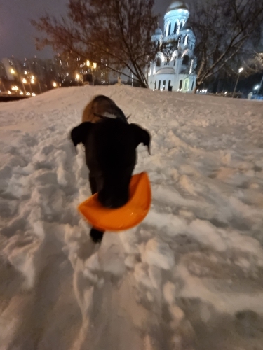 In general, a cool plate, flew very well, until it hit my mouth with my hole. A plate for neat dogs who do not eat immediately, like mine. Although in this state even flies. In general, I recommend! In the photo, the plate is after 30 minutes of playing.