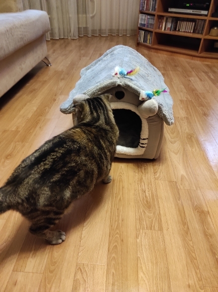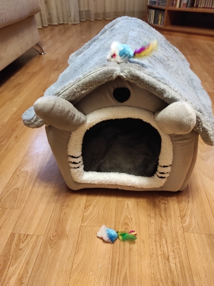 I liked the house, I ordered it for a cat, I went right away, it’s convenient to assemble, the pillow in the case is convenient to wash. As a gift, the store sent 2 Toys, thank you to the seller for Good Goods and delivery on time!