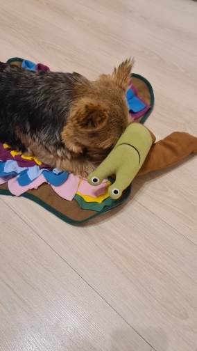 2. IQ TRAINING : this snail is in magic , the body is rolled up with adhesive closure , you dog is trained to open the closure and flatten the body to get their treats inside the pocket during snuffle process.