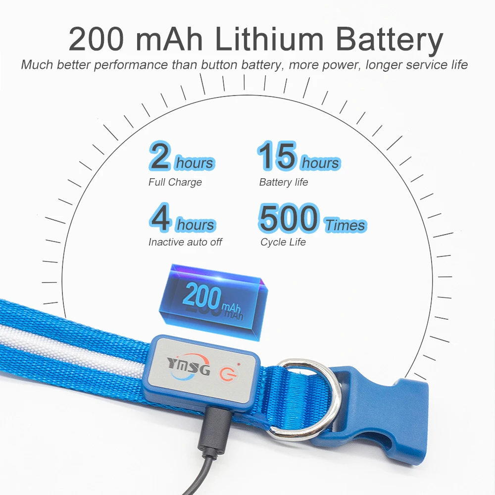 Great Collar! We really liked. three modes, USB charging, waterproof, 1 km visibility!