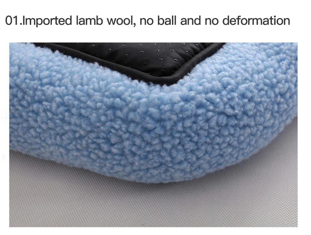 1.Luxurious material:The inside of the bed is made of faux wool, which provides warmth and comfort. The outside of the bed is made of oxford dacron, which is waterproof and wearproof. The combination of these two materials can meet all needs your pet has.