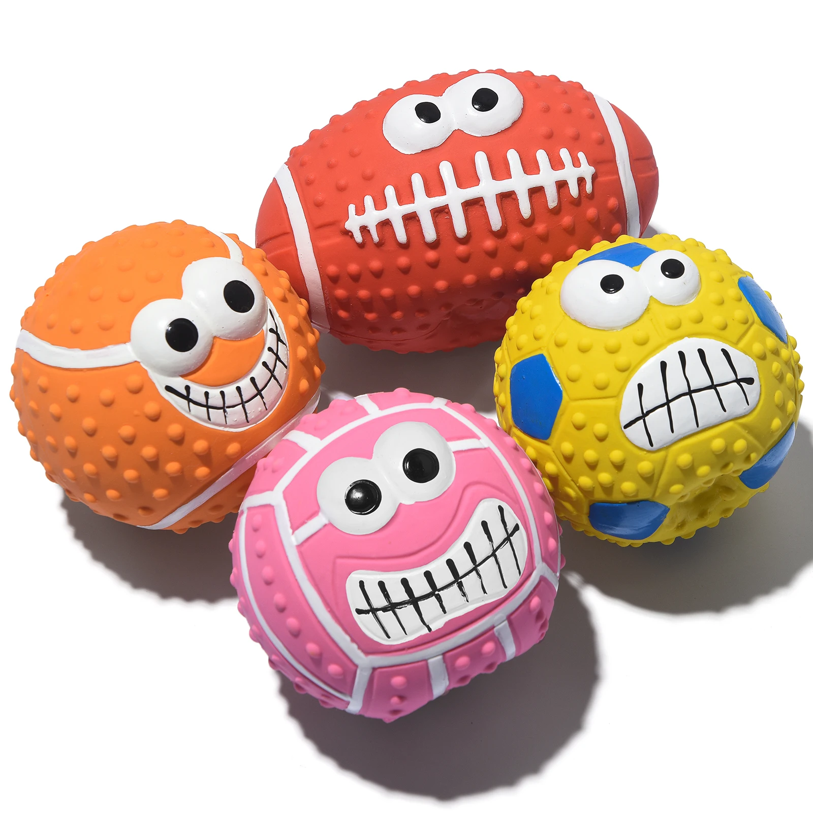 Package Include: 1-4 PCS Squeaky Rubber Balls with funny expressions