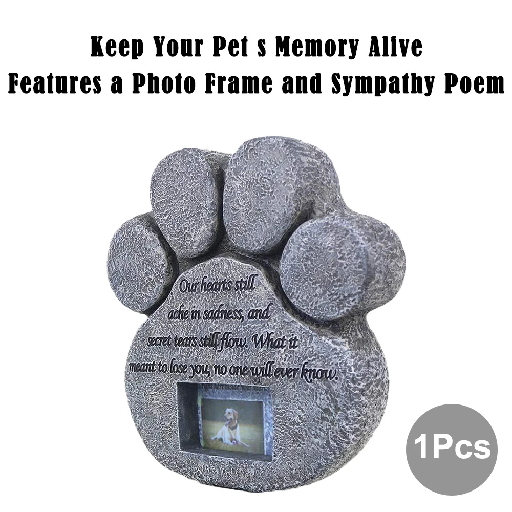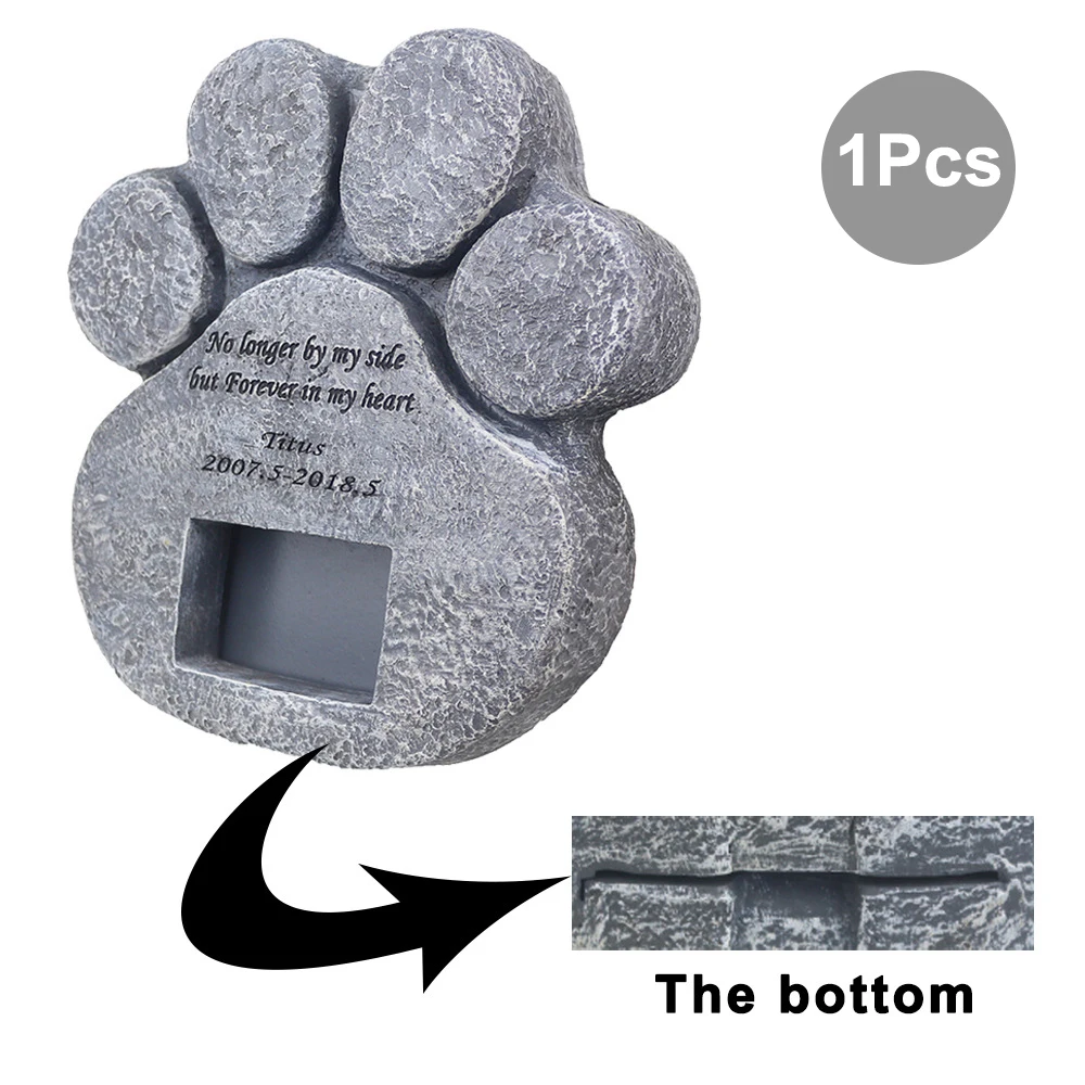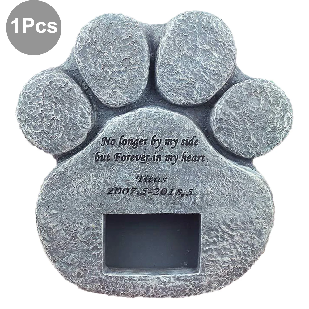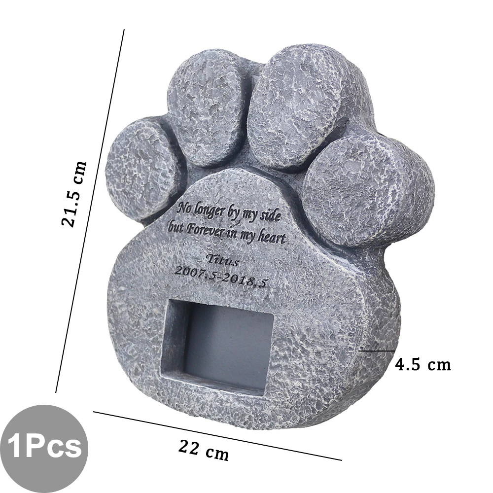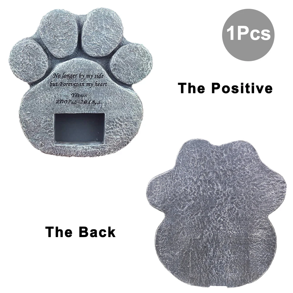 Memorial Tombstone for Pet Keepsake Gravestone Tomb Dog Cat Paw Print Animal Funeral Footprint Shaped Can Put Photos