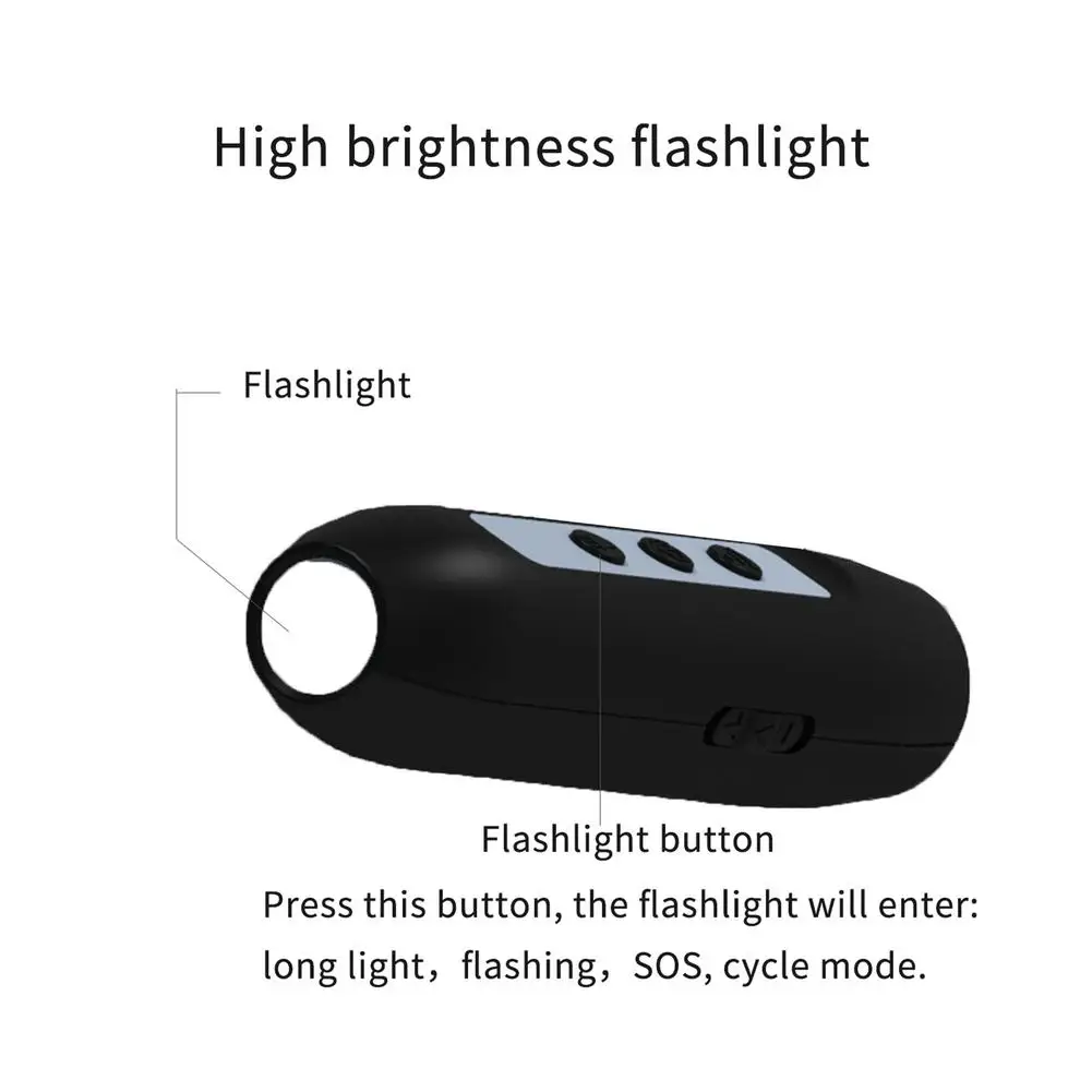 1.Independent strong light 3W flashlight, with three modes of long light SOS and burst flashing;