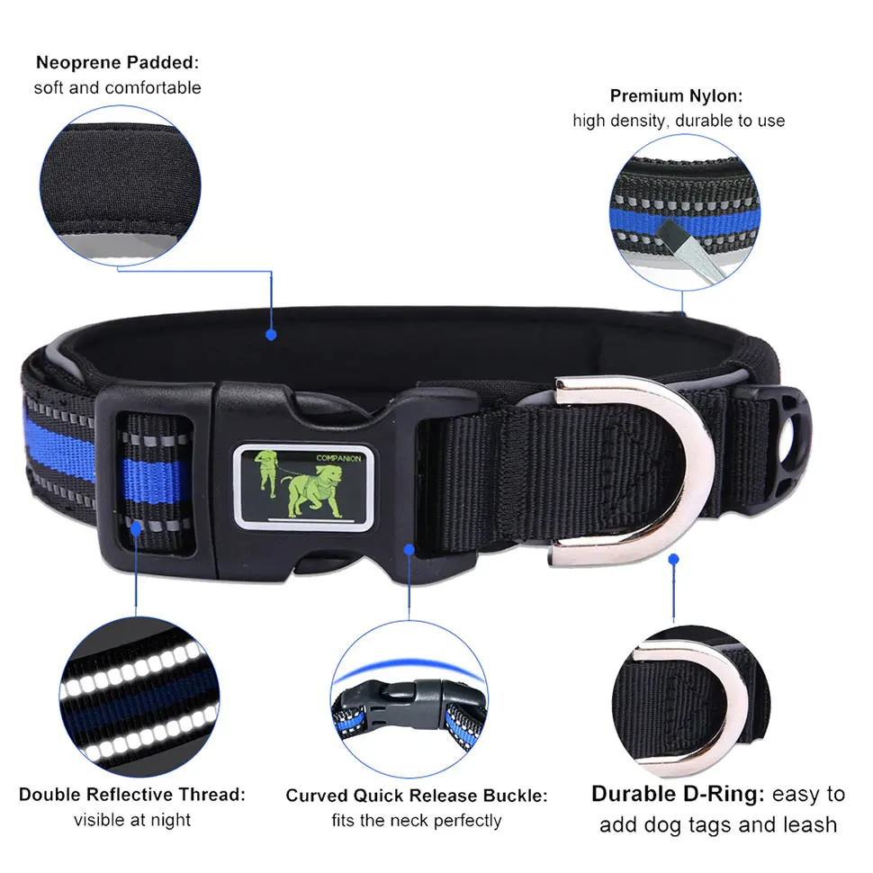 The products are high-end but not expensive, with excellent workmanship and exquisite materials. The collar is made of thick neoprene sponge, soft and comfortable, and does not squeeze the neck. With four reflective lights, the night reflection effect is excellent, and you are not afraid to walk the dog at night.