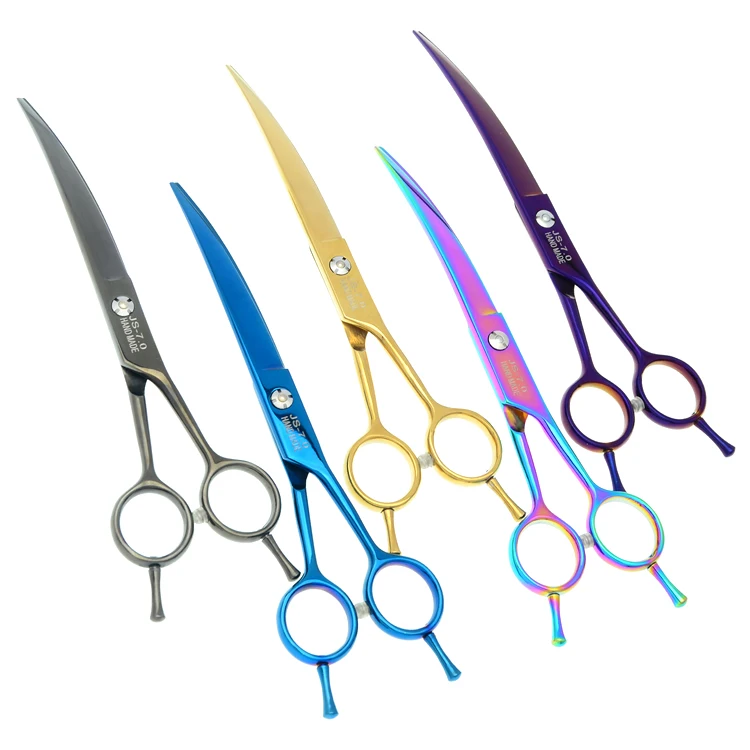 Purple Dragon 7.0″ Curved Dog Grooming Scissors Steel Pet Scissors 6.5″ Dog Thinning Shears Animals Hair Cutting Tools B0028B
