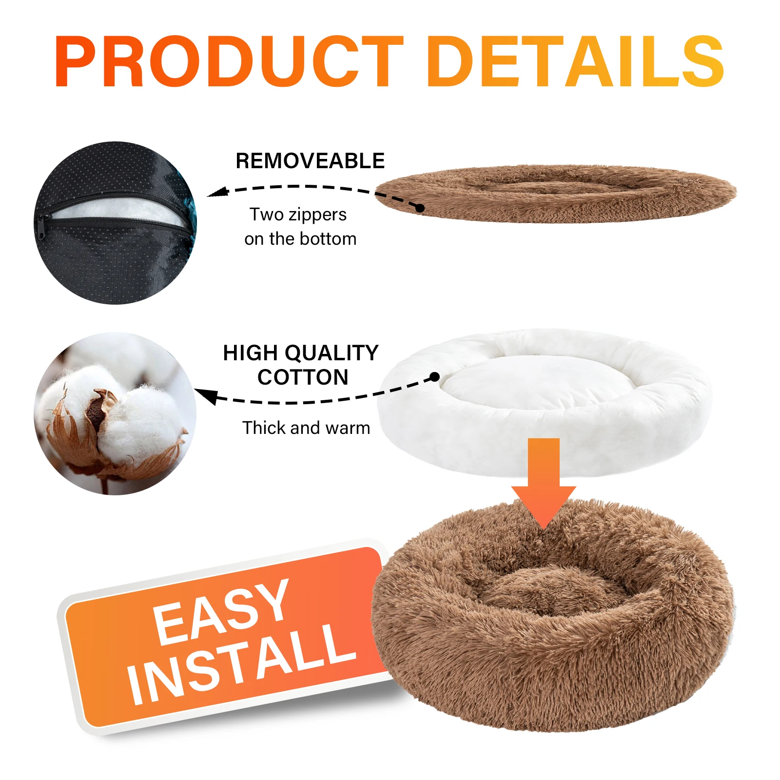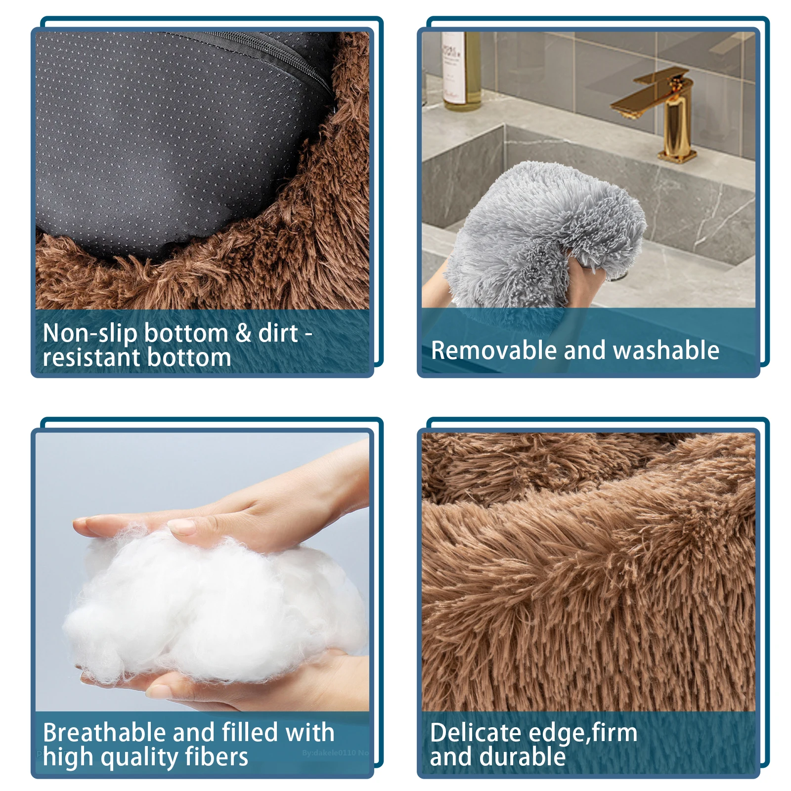 The dog bed consists of two parts-the cover & the inner core. The cover is made of 4cm long plush which has the touch likes the owners' hug. Filled with high quality PP cottom make the dog bed more comfy amd cozy