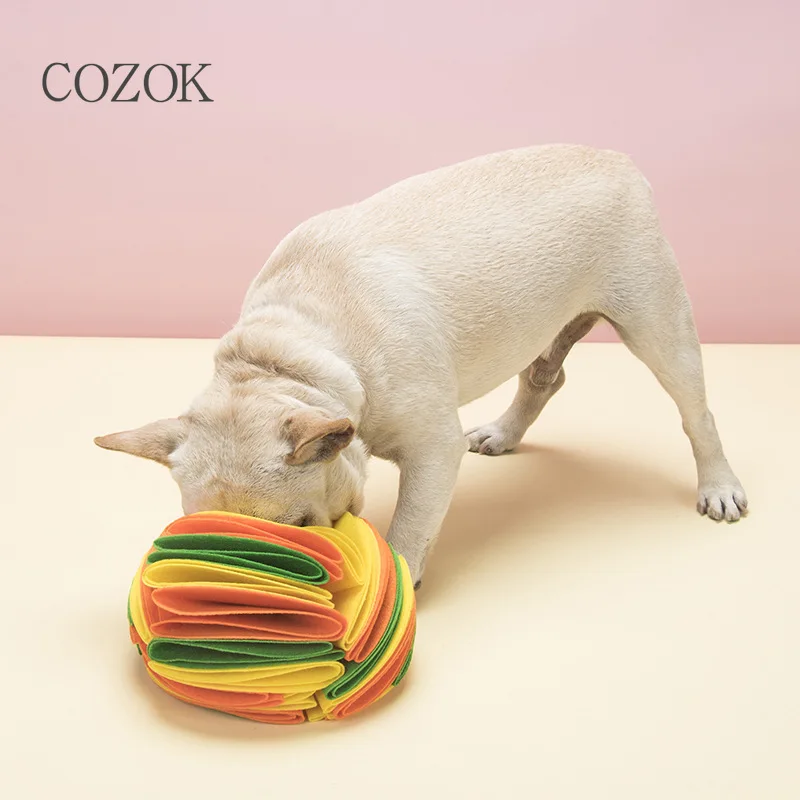 3. Smell the ball is made from many folding round, with many deep Tibet now, the owner can hide food in between the fabric drape, encourage your pet to sniff out them