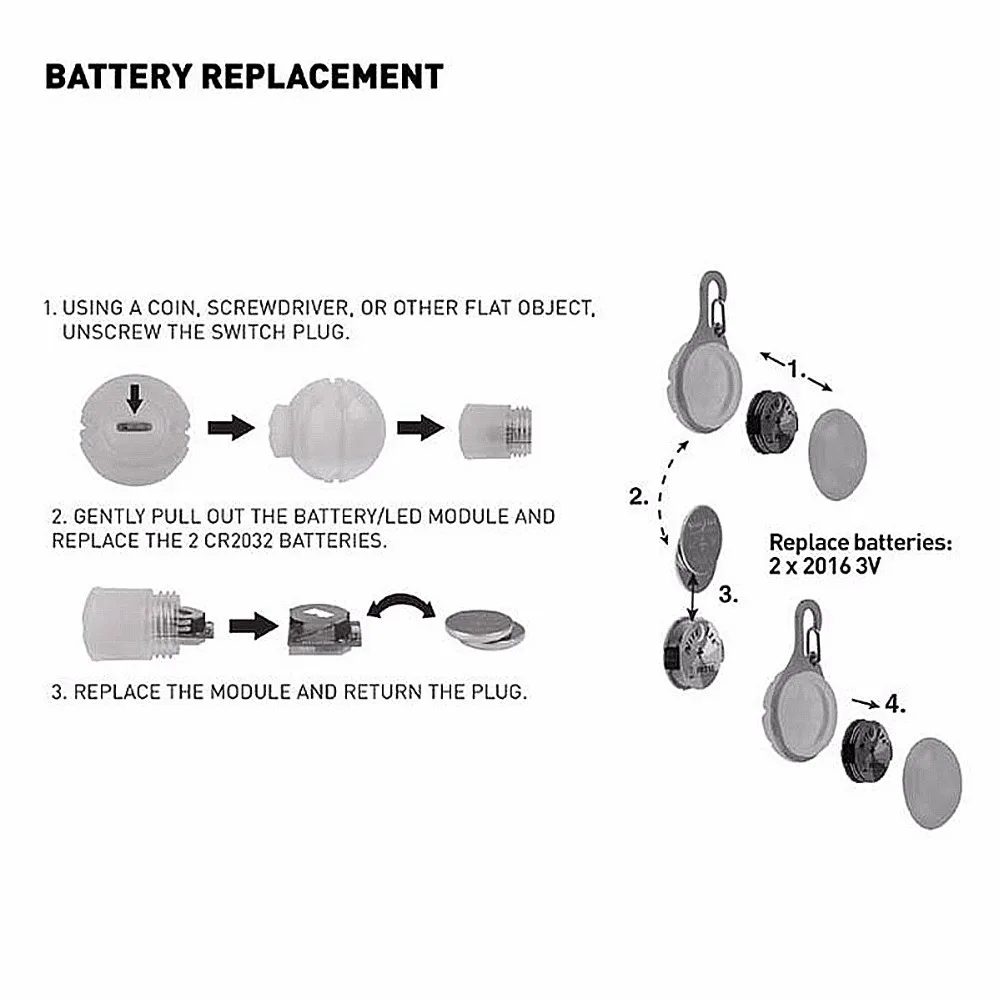 2. Gently pull out the battery/LED module and replace the 2 CR2032 batteries;